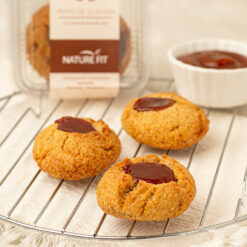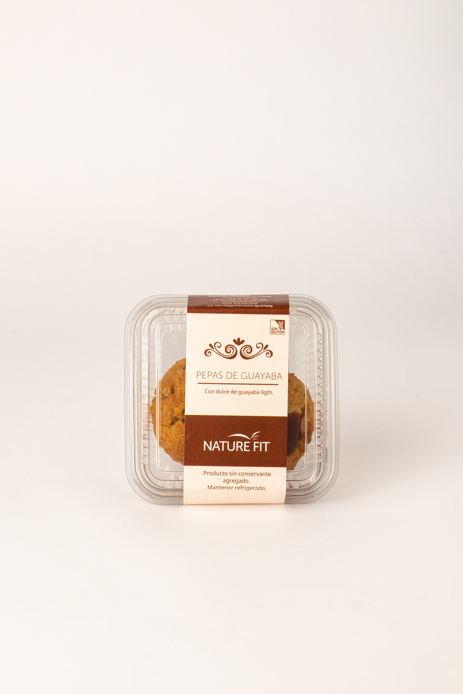 Ingredientes: Harina de almendras, huevo, manteca, avena sin gluten, eritritol, fécula de maíz, dulce de guayaba light (pulpa de guayaba, steviol glucosido y azúcar) y ralladura de naranja.